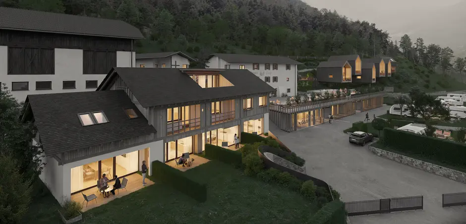 In posizione panoramica e dominante sui margini di Chiusa, con vista aperta sul maestoso Monte Sabiona e il suo pittoresco monastero, il complesso esistente dell’Ansitz Gamp Camping Hotel è stato ampliato con un progetto architettonico sensibile e accurato. Con l’obiettivo di soddisfare le crescenti esigenze qualitative degli ospiti, la famiglia Schöpfer ha sviluppato un nuovo concetto turistico che interpreta il luogo come una “seconda casa”: uno spazio di familiarità, protezione, libertà e rigenerazione.