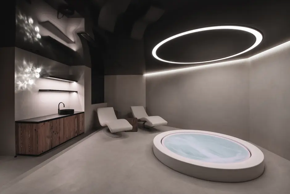 Elementi d'arredo accurati, dal design purista in bianco e nero, dividono l'ambiente in singole isole funzionali senza dividerlo. Abitare ridotto all'essenziale - tipicamente svizzero, realizzato con la massima qualità da aziende altoatesine e da noi.