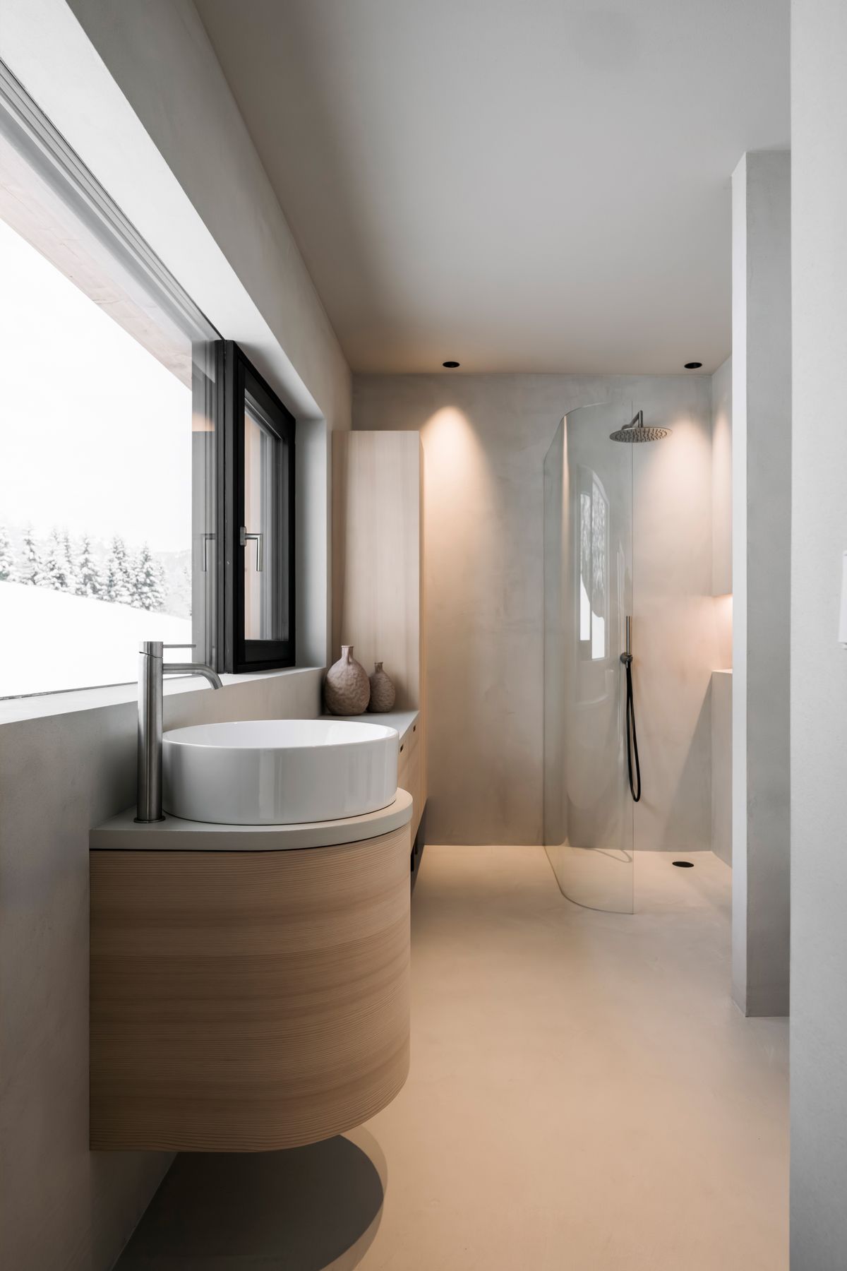 All’interno prosegue la sobrietà progettuale. Un linguaggio formale essenziale, tonalità naturali calde e materiali di alta qualità creano un’atmosfera di quieta intimità.