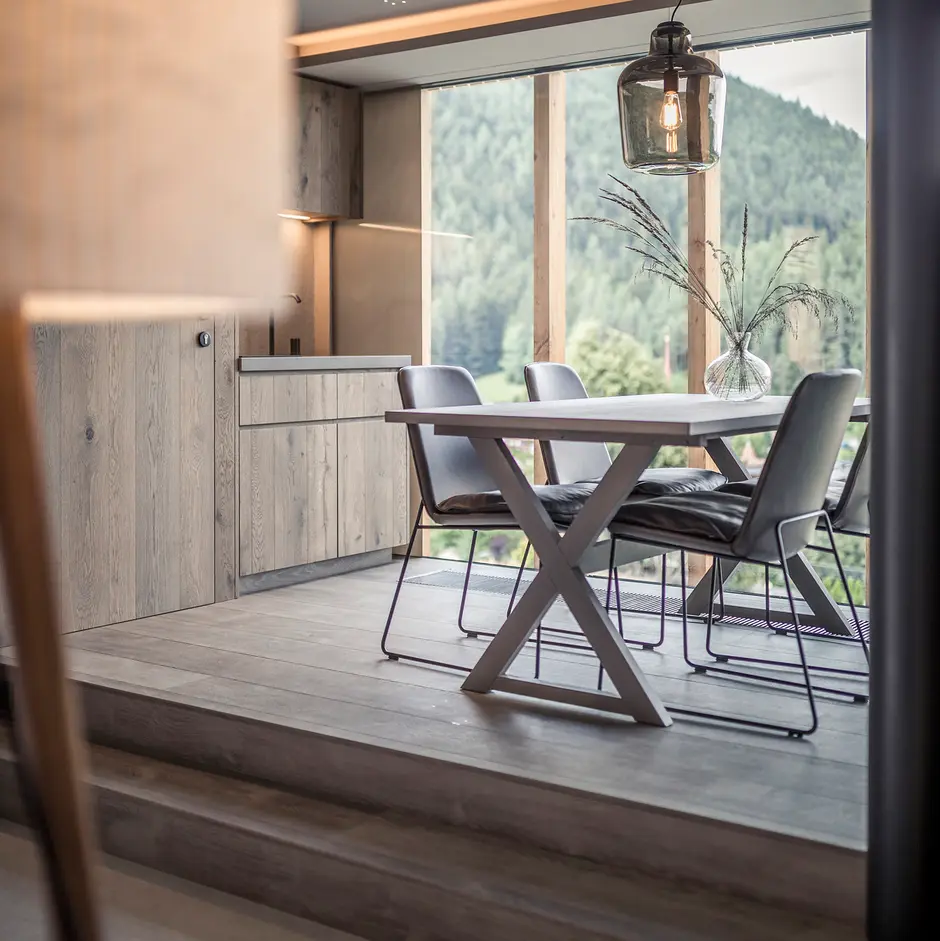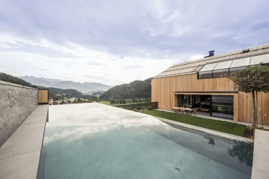 Il nostro progetto convince per l’estetica contemporanea degli spazi abitativi, l’uso di materiali da bioedilizia sani e sostenibili e l’attenta reinterpretazione della tradizione costruttiva locale. La struttura tipica dei masi della zona, in cui l’edificio residenziale è separato dalla stalla, è stata ripensata. Grazie al connubio di aspetti topografici, naturalistici e architettonici strettamente correlati, il nuovo maso si fonde armoniosamente e rispettosamente con il paesaggio culturale.