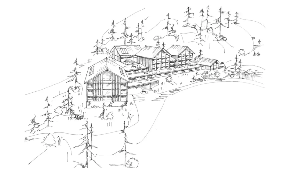 L’intervento si sviluppa attraverso volumi integrati nella pendenza naturale del terreno, disposti in modo articolato e con coperture a due falde che richiamano la tradizione architettonica locale. La disposizione sfalsata dei corpi edilizi, insieme a una densità equilibrata e a un orientamento studiato, dà vita a un insieme armonico e autentico, ispirato alla struttura di un piccolo borgo alpino. Il progetto prevede la realizzazione di 50 appartamenti di alta qualità, tutti dotati di terrazze private e viste aperte sul paesaggio montano. Una futura espansione a nord del lotto ospiterà ulteriori 25 unità abitative.
