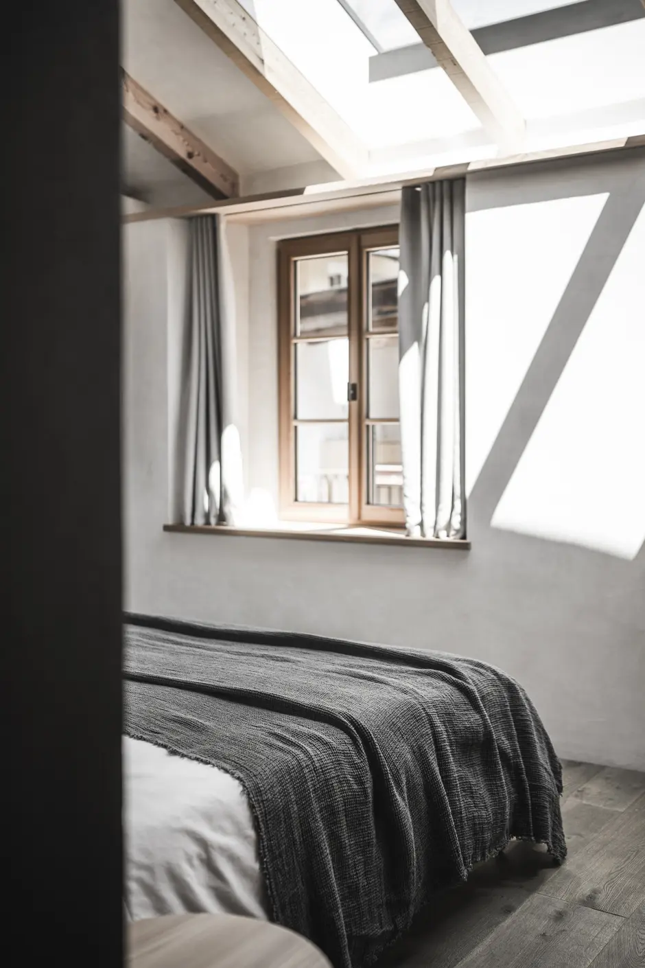 Nel 2014, l’architetto Stefan Gamper compie un atto di coraggio: acquista l’edificio in rovina, con la ferma intenzione non solo di conservarlo, ma di restituirgli nuova vita. L’ambizione era chiara: mantenere intatta l’autenticità storica dell’edificio e allo stesso tempo renderlo funzionale alla vita contemporanea – luminoso, essenziale, raffinato.