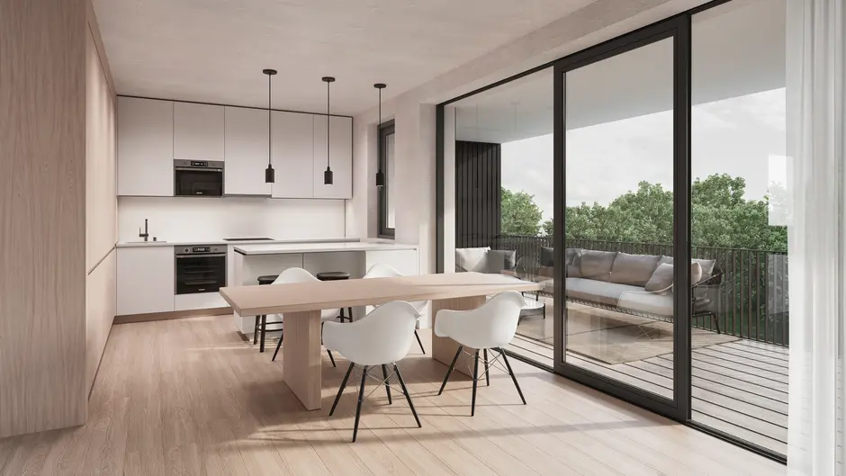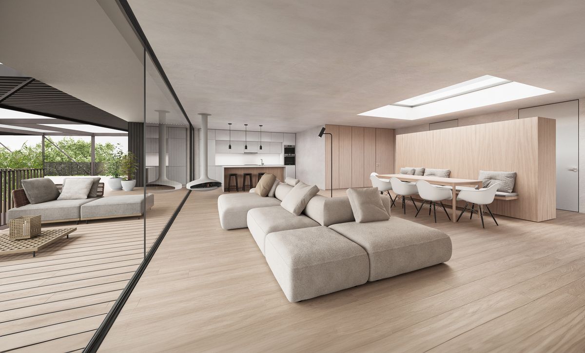 Die Architektur ist sachlich und klar formuliert, zugleich atmosphärisch und behaglich in ihrer Wirkung. Großzügige, lichtdurchflutete Grundrisse schaffen helle Wohnräume mit hoher Aufenthaltsqualität.