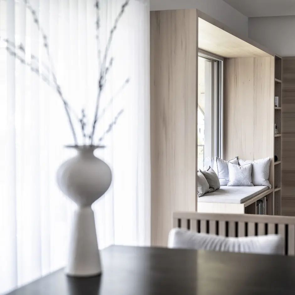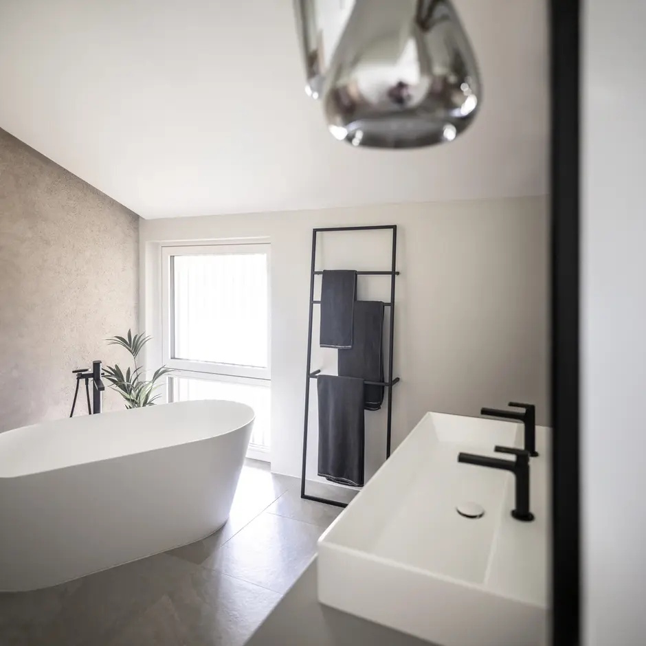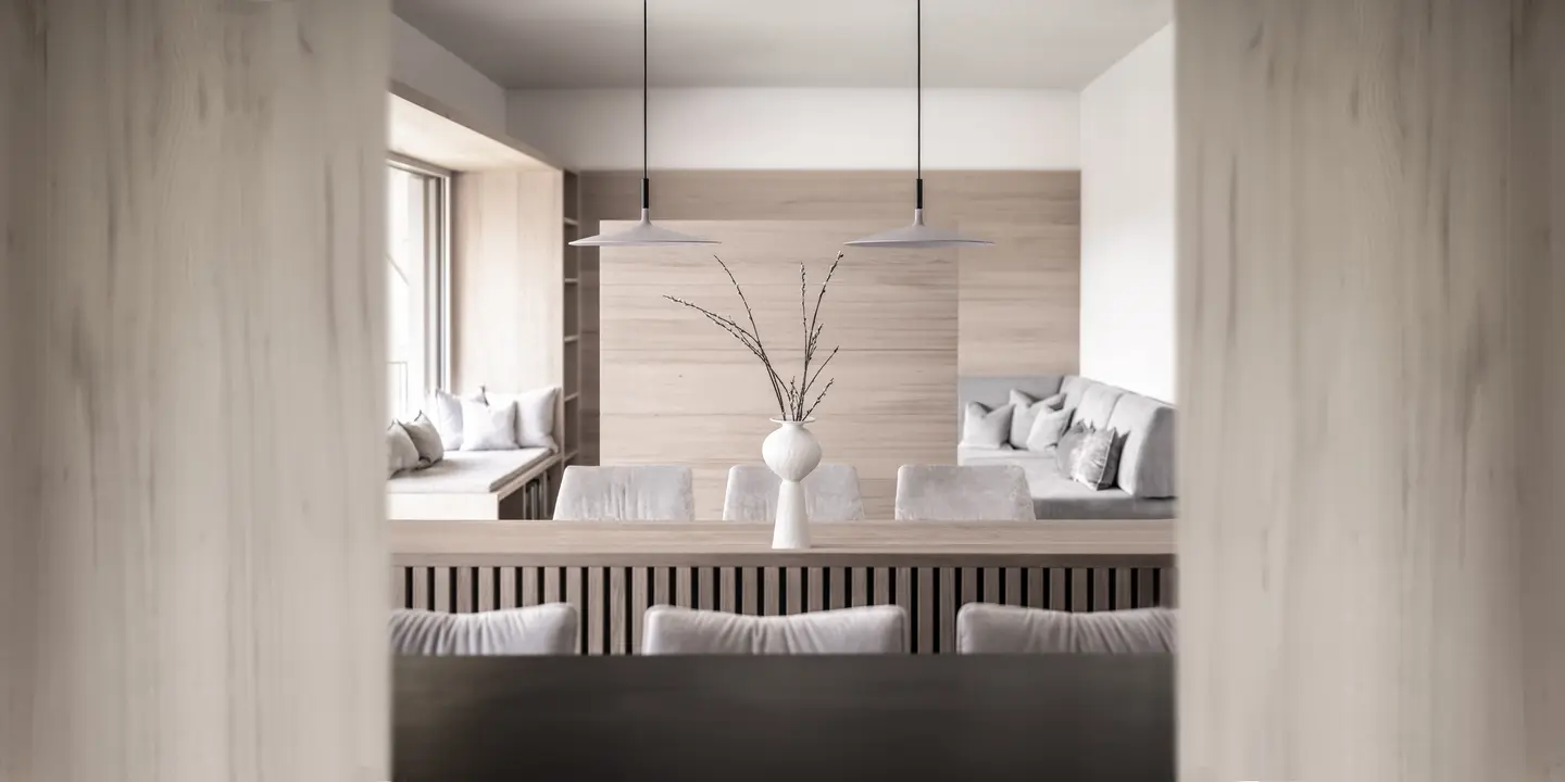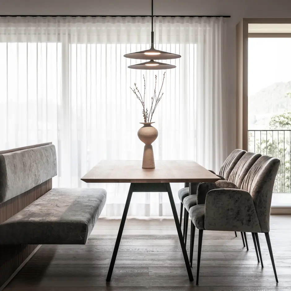 Perfekte Kombination aus zeitloser Eleganz und modernem Komfort, erzielt durch eine hochwertige Material- und eine durchdachte Farbwahl. Das Naturholz trägt nicht nur zur optischen Wärme und Behaglichkeit bei, sondern fördert auch ein gesundes und natürliches Raumklima. Die Farbgestaltung der Wohnung orientiert sich an sanften Erdtönen, die eine ruhige und harmonische Atmosphäre erzeugen. Diese natürliche Farbpalette ergänzt die Holzoptik und unterstreicht das Gefühl von Geborgenheit.